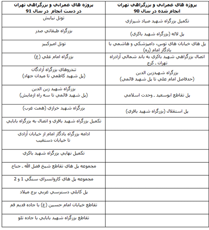 گزارشی از پروژه های عمرانی تهران در ۹۱