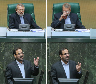 بر اساس این گزارش در آغاز جلسه علنی، هیئت رئیسه بررسی طرح استیضاح را در دستور کار قرار داد اما هنوز وارد بررسی این طرح نشده بود که جمعی از استیضاح کنندگان با ازدحام در جایگاه هیات رئیسه اعلام کردند که امضا خود را پس گرفتند و بررسی این طرح متنفی شده است اما علی لاریجانی رئیس مجلس اعلام کرد طبق آئین نامه چون طرح استیضاح هنوز بیش از 10 امضا دارد همچنان در دستور کار است.