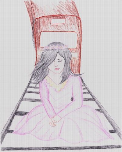 در تصویر آخری که کاترین باسو نشان می دهد بوی مرگ بیش از هر زمان دیگر حس می شود. برای این دختران جوان ازدواج کردن نه تنها خوشبختی به همراه ندارد بلکه با غم و اندوه فراوان همراه است: «تصویری دختری که روی ریل قطار نشسته آزار دهنده است؛ آنها فکر می کنند کودکی، آزادی و استقلالشان به سرقت رفته است».