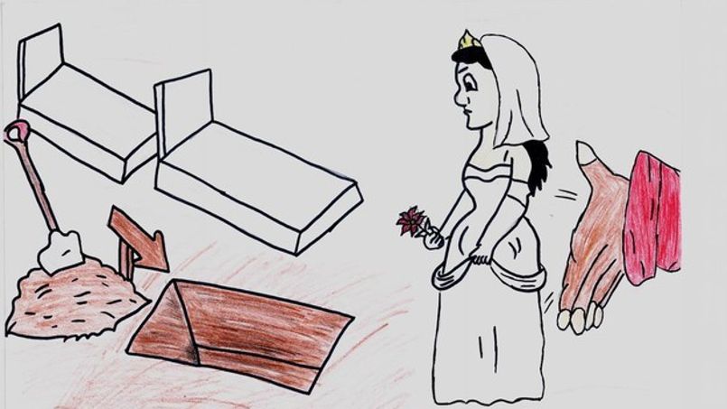به گزارش فرارو، وقتی از دختر دوازده ساله ای خواسته می شود تا احساسش نسبت به ازدواج را طراحی کند با کشیدن یک قبر به خوبی حرف هایش را می زند.