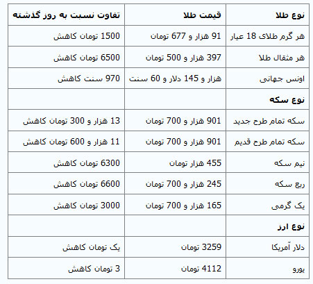 در بازار امروز - پنجشنبه - هر گرم طلای 18 عیار به قیمت 91 هزار و 677 تومان و سکه تمام به قیمت 901 هزار و 700 تومان داد و ستد میشود.