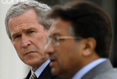 در این چند هفته اخیر، مسئله به گونهای دیگر رقم خوردهاست. پس از سوقصد نافرجام علیه خانم بینظیر بوتو (که به زعم ایشان نه از سوی تروریستها و القاعده بلکه ازسوی ارتش و آقای مشرف ترتیب داده شده)، رئیسجمهور پاکستان بهانهای مناسب به دست آورد و با اعلام وضعیت فوقالعاده و تعلیق قانون اساسی، کار را به آنجایی رساند که حتی قضات دادگاه عالی را از کار برکنار کرد و با انتصاب دولت و اخذ مشروعیت از قضات انتصابی دادگاه عالی، مجوز پنج سال دیگر ریاستجمهوری را نیز به دست آورد. جناب ژنرال مشرف که توانسته بود با کودتایی بدون خونریزی دولت وقت نواز شریف را در سال 1999 سرنگون کند و بر مسند قدرت بنشیند، اکنون با کودتای بدون خون دیگری قصد دارد این مسند را همچنان بلامنازع در دست نگه دارد. البته مخالفینی چون خانم بوتو، قضات، وکلا و نویسندگان بیکار ننشستهاند و با تهییج مردم کار را به جایی رساندهاند که در این روزها درگیریهای خیابانی بین نیروهای دولتی و مخالفین کما کان تداوم دارد. وجود گروههای اسلامی در پاکستان را باید به این قاعده افزود که طیف گستردهای از القاعده و گروههای وابسته به آن تا گروههای میانهرویی چون جماعت