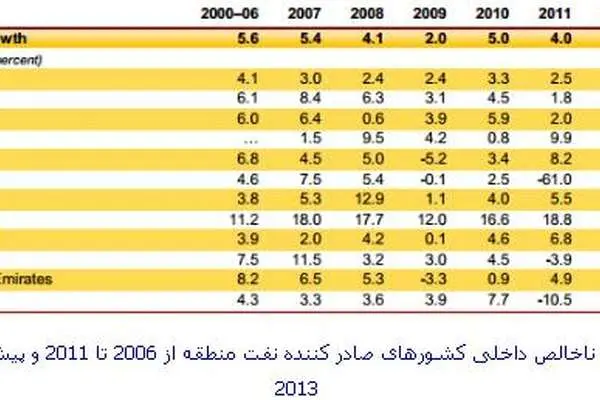 کشورهای صادر کننده نفت در منطقه خاورمیانه عموماً از افزایش بهای نفت در سال 2011 سود فراوانی بردند اما علیرغم این امر تکانه های اقتصادی ناشی از بحران در اروپا و اقتصاد جهانی تأثیرات منفی خود را بر اغلب این کشورها، به خصوصی آن دسته که وابستگی تجاری بسیاری با اروپا داشتند بر جای گذاشت.