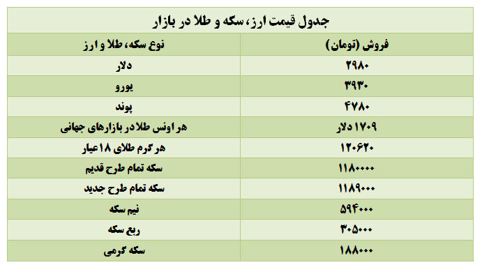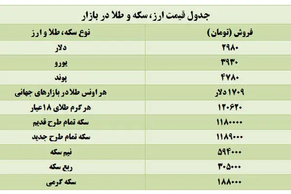 جدول قیمت انواع ارز و سکه در بازار آزاد