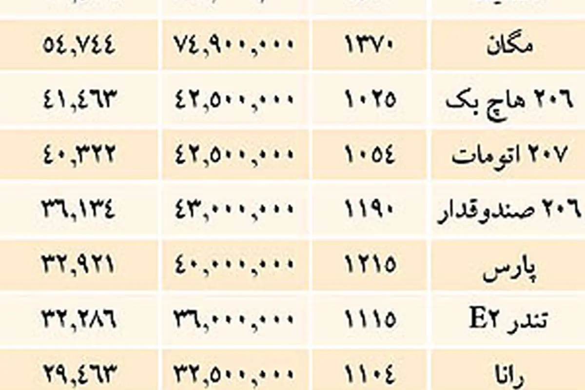 از 206 که بگذریم، به «مگان» میرسیم، خودرویی که یک هزار و 370 کیلوگرم وزن دارد و پارس خودروییها قیمت آن را در نمایندگیهای خود حدود 75 میلیون تومان تعیین کردهاند. با این حساب، مگان حدودا کیلویی 55 هزار تومان به دست مشتریان میرسد.