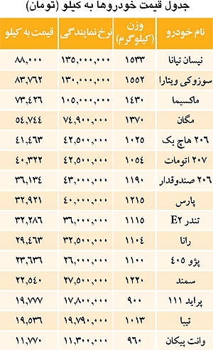 اما به سراغ «وزن» و «قیمت» خودروهای داخلی برویم و ببینیم در نهایت نرخ آنها به «کیلو» چقدر از آب در میآید.