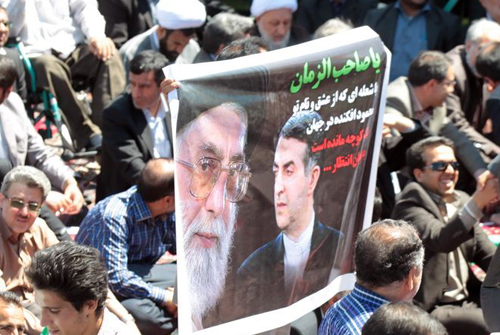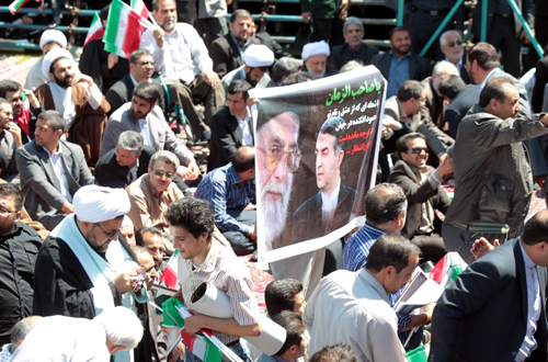 به گزارش مهر، در هنگام سخنرانی احمدی نژاد در دستان یکی از حاضرین بنری از پرچم ایران همراه با تصاویر مقام معظم رهبری رئیس جمهور و رحیم مشایی دیده می شد. با گذشت دقایقی از به اهتزاز درآمدن این پرچم برخی از مسئولان خواستار جمع شدن این بنر شدند. سایت ریاست جمهوری در عکس های منتشر شده از اصفهان عکسی از این بنر منتشر کرده است.