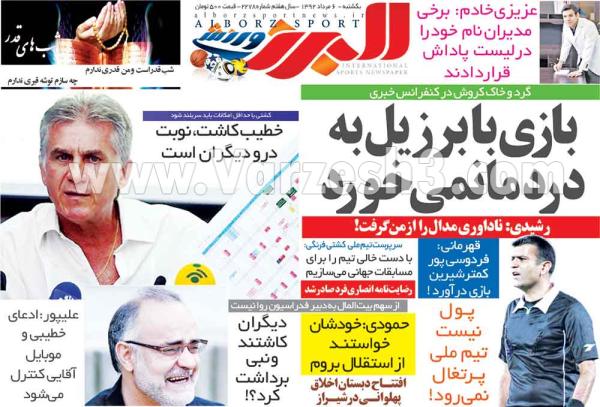 صفحه نخست روزنامههای ورزشی یکشنبه ۶ مرداد