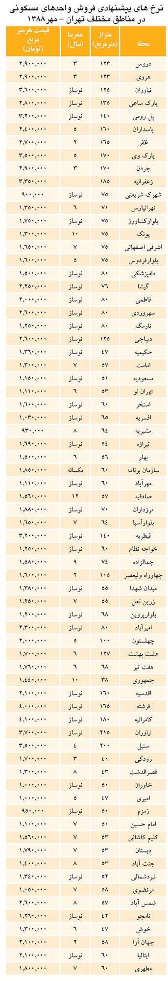 ستون امروز نبض بازار ۷۰ نرخ پیشنهادی فروش واحدهای مسکونی در مهرماه سال ۸۸ را برای طرفداران خود جمعآوری و در معرض دید گذاشته است.