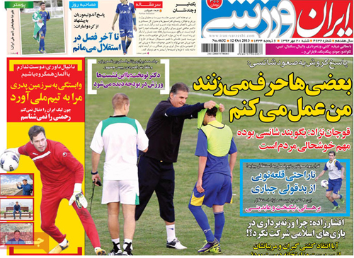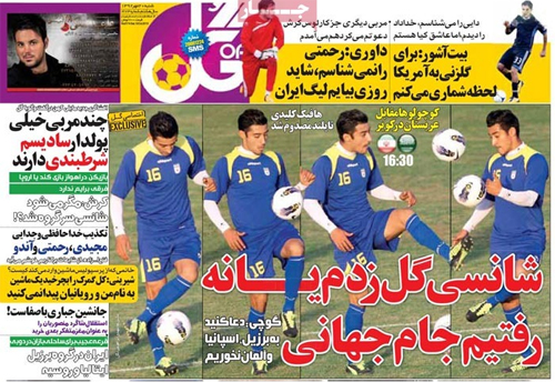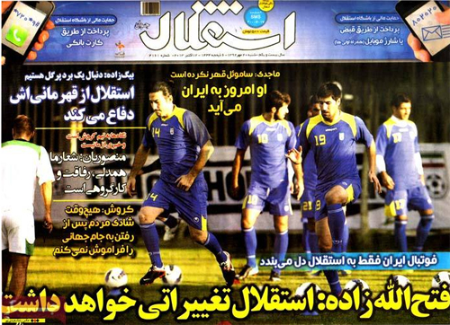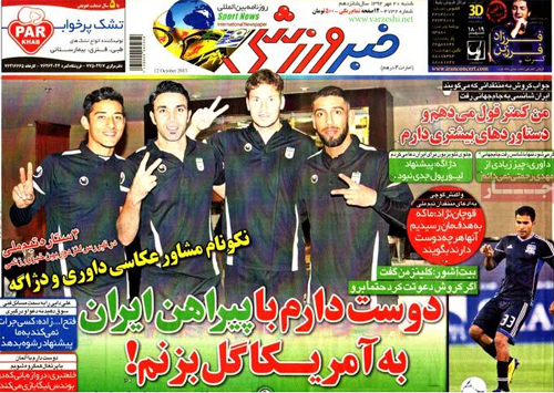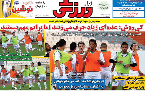 تمرینات تیم ملی از چند روز پیش آغاز شده است. چند چهره جدید نیز از آمریکا و آلمان به اردوی تیم ملی اضافه شده اند. بیت آشور از آمریکا و داوری از آلمان. صفحه نخست روزنامه ورزشی صبح شنبه را در ادامه میبینیم: