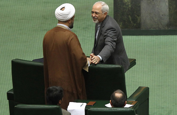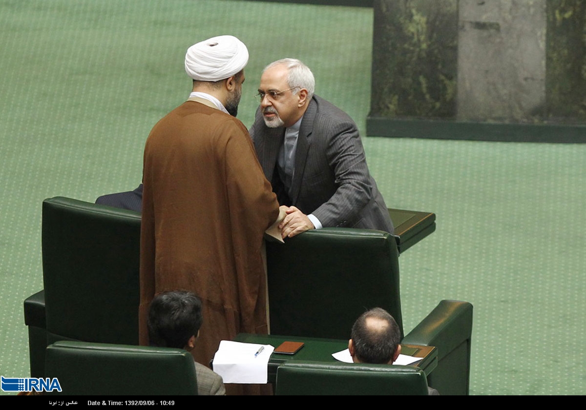 (تصویر) گفتگوی ظریف و رسایی در مجلس
