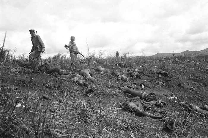 اجساد سربازان ژاپنی که در نبرد اقیانونس آرام موسوم به"بانزای" -یعنی جنگ افتخار آمیز تا آخرین قطره خون - در "گوام" جنگیده اند. اکتبر 1944
