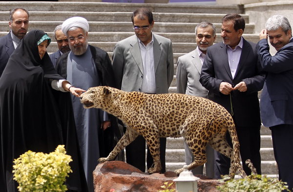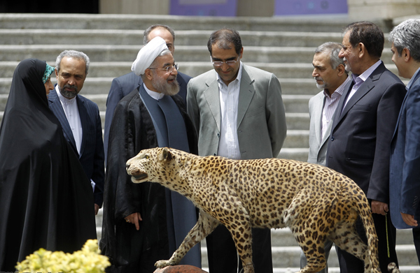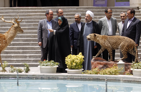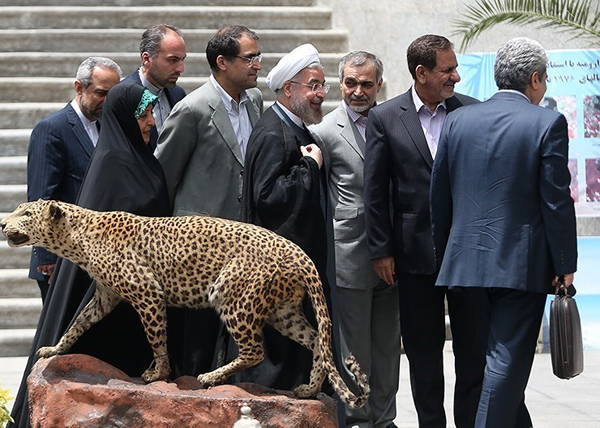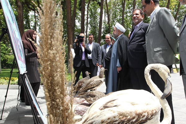 رییس جمهوری پس از جلسه روز چهارشنبه هیات دولت از نمایشگاه چالش های زیست محیطی بازدید کرد که پیراهن محیط بانی و کارت شناسایی همیار محیط زیست به وی اهدا شد.