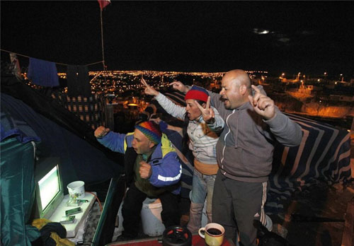 هوادارانی که نتوانستهاند برای تماشای مسابقات جام جهانی به برزیل بروند با شور و اشتیاق زیاد این مسابقات را از تلویزیون تماشا میکنند.