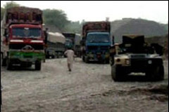 در ماه دسامبر گذشته شورشیان بیش از 90 کامیون حامل تدارکات برای نیروهای ناتو را در جاده های شمال غرب پاکستان آتش زده و محموله هایشان را غارت کردند.