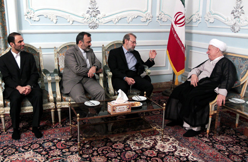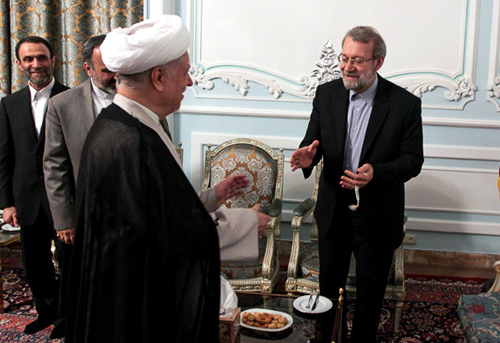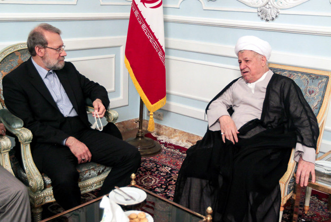 در حاشیه سفر آیت الله هاشمی رفسنجانی به استان خراسان رضوی دیروز علی لاریجانی، رئیس مجلس شورای اسلامی با حضور در محل اقامت رئیس مجمع تشخیص مصلحت نظام، با وی دیدار و گفتوگو کرد؛ در این یدار دو طرف درباره مسائل مهم سیاسی، اقتصادی، فرهنگی و اجتماعی بحث و تبادل نظر کردند.