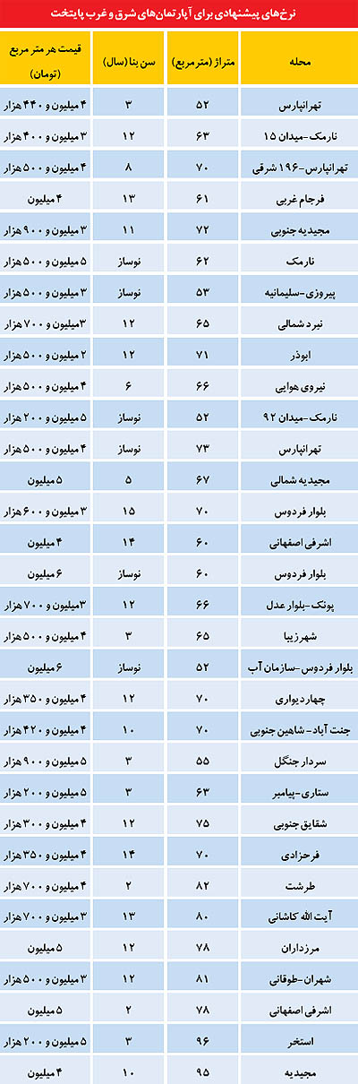 مقایسه بازار مسکن شرق و غرب تهران