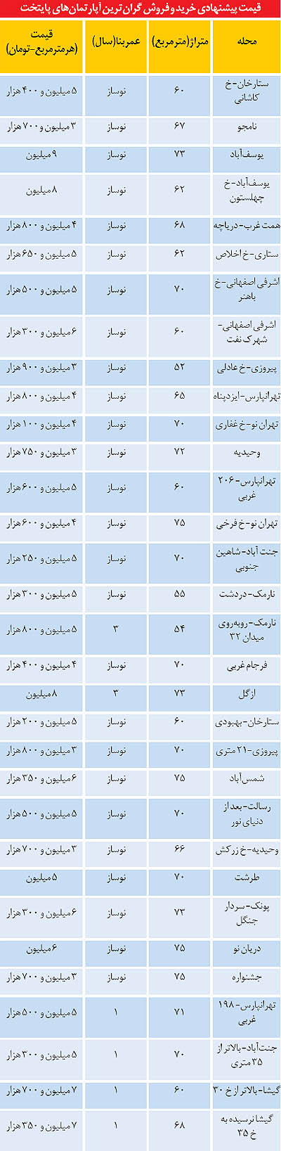 البته برخی از مشاوران املاک معتقدند دستهای از فروشندگان در بازار دلایل دیگری برای بالا نگه داشتن قیمت پیشنهادی ملک خود ارائه میدهند. یکی از این مشاوران به «دنیای اقتصاد» در این باره چنین توضیح میدهد: در برخی از محلات تهران قيمتهای پیشنهادی خرید و فروش ملک کوچه به کوچه متفاوت است. بهطور مثال در منطقه يوسفآباد نميتوان قيمت خانههاي خيابان مستوفي را با خيابان جهان آرا مقايسه کرد. در این محله آپارتمانی با 73 متر زیربنا، متر مربعی 9 میلیون تومان قیمتگذاری شده است. این در حالی است که میانگین قیمت خرید و فروش ملک در این محله در هر متر مربع حدود 6 میلیون و 920 هزار تومان است.