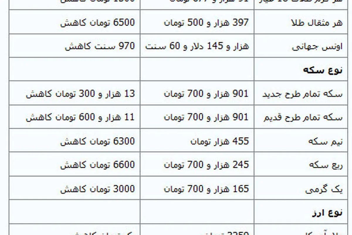 کاهش قیمت سکه و طلا در روز پنج شنبه