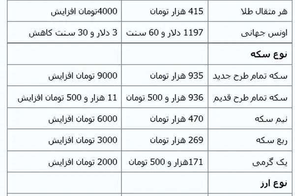 بر این اساس قیمت نیم سکه 470 هزار تومان و هر دلار آمریکا در بازار آزاد نیز 3264 تومان است.