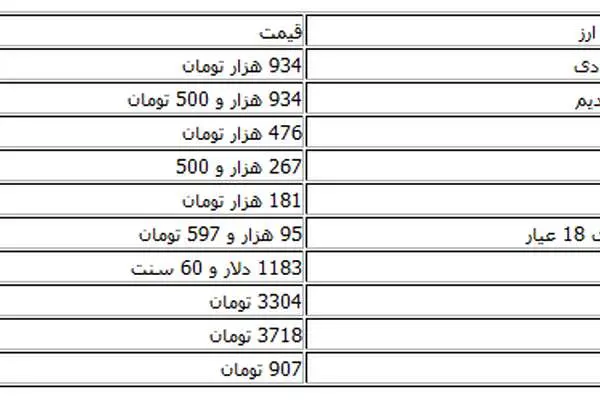 در بازار ارز نیز یک دلار آمریکا مثل دیروز به نرخ 3304 تومان فروخته شد؛ یورو هم به قیمت 3718 تومان عرضه شد که روز گذشته قیمت آن 3724 تومان بود.