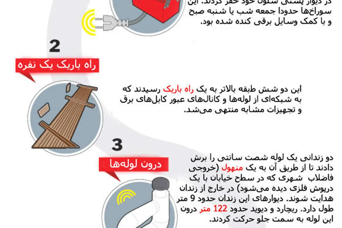 این دو قاتل طرحی ماهرانه را برنامهریزی کرده بودند که در ادامه نقشه گرافیکی فرار آنها را خواهید دید .