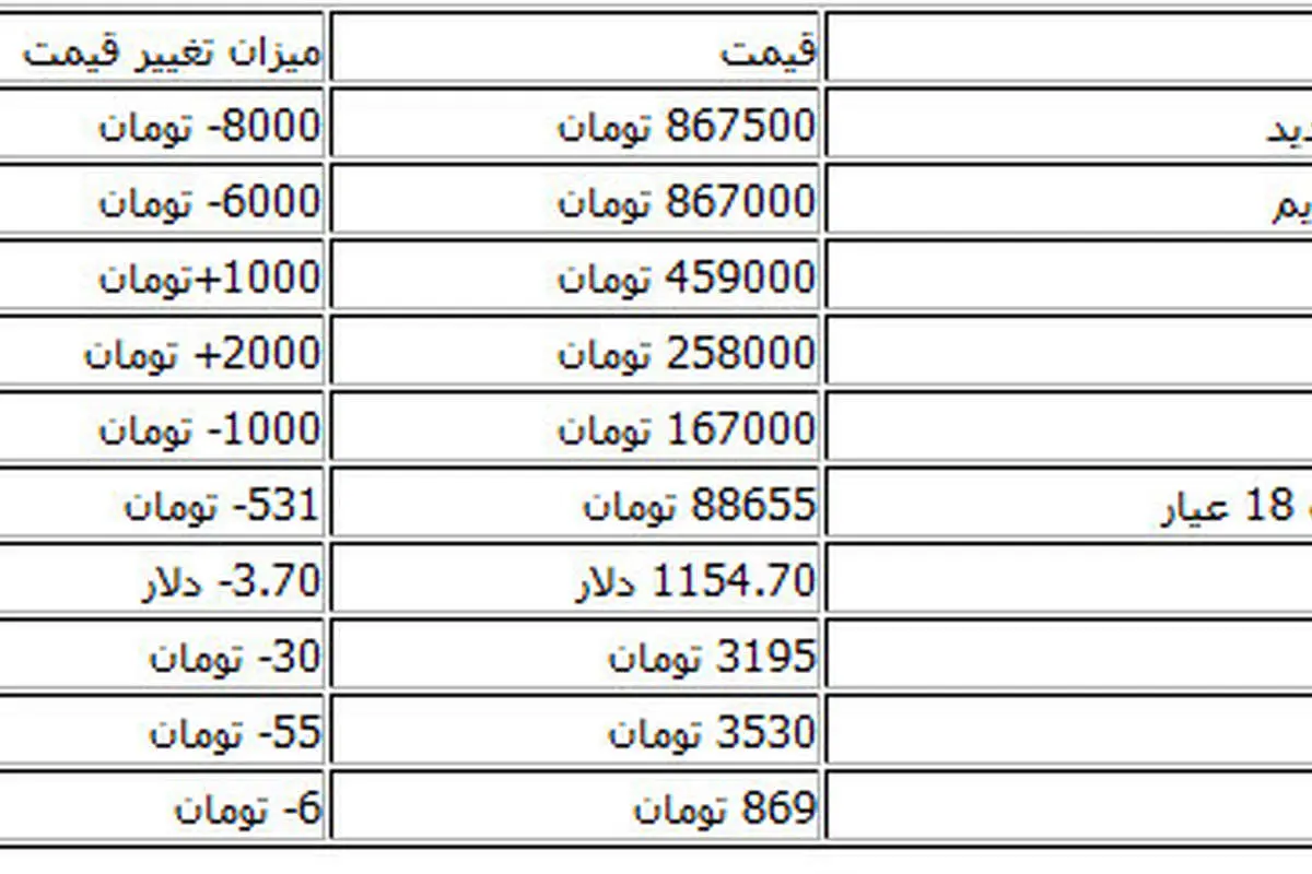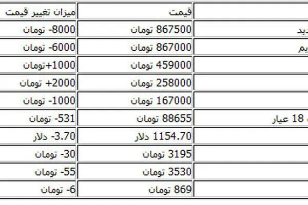 در بازار سکه، طرح جدید با 8 هزار تومان کاهش 867 هزار و 500 تومان، سکه طرح قدیم با 6 هزار تومان افت قیمت 867 هزار تومان و نیم سکه با هزار تومان رشد 459 هزار تومان فروخته میشود.