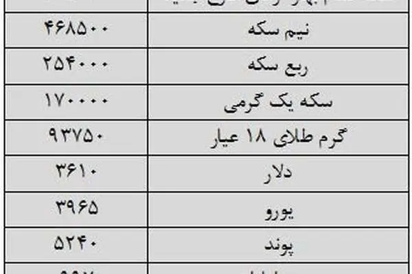 در حال حاضر هر قطعه سکه تمام بهار آزادی 922 هزار تومان، نیمسکه 468 هزار و 500 تومان، ربع سکه 254 هزار تومان و سکه یکگرمی 170 هزار تومان است.