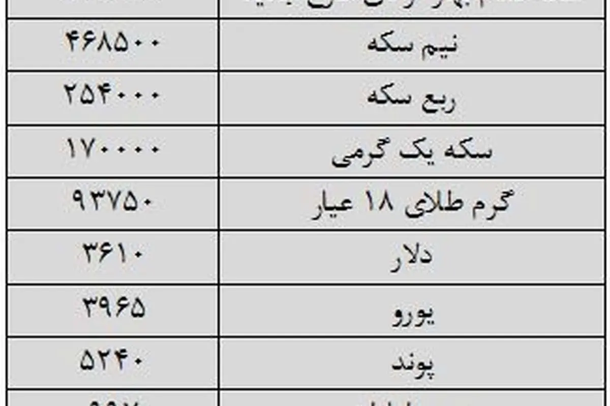 از سوی دیگر، قیمت دلار 35 تومان، یورو 25 تومان، پوند 30 تومان، درهم امارات 3 تومان، لیر ترکیه 3 تومان و یوان چین 4 تومان کاهش قیمت داشت.