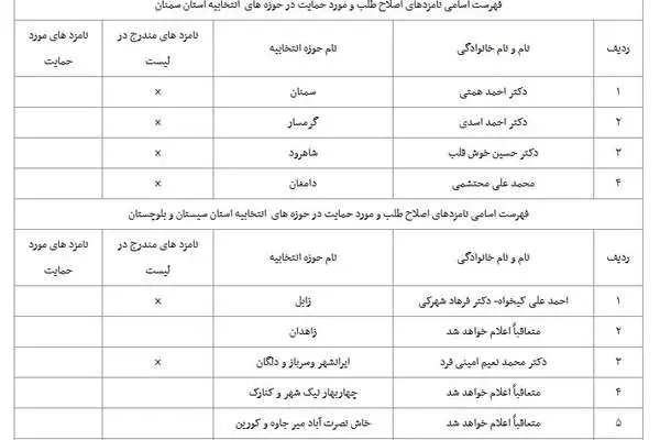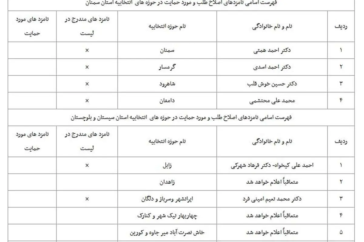 لیست اسامی ۱۷۲ کاندیدای ائتلاف فراگیر اصلاح طلبان در سراسر کشور به شرح زیر است: