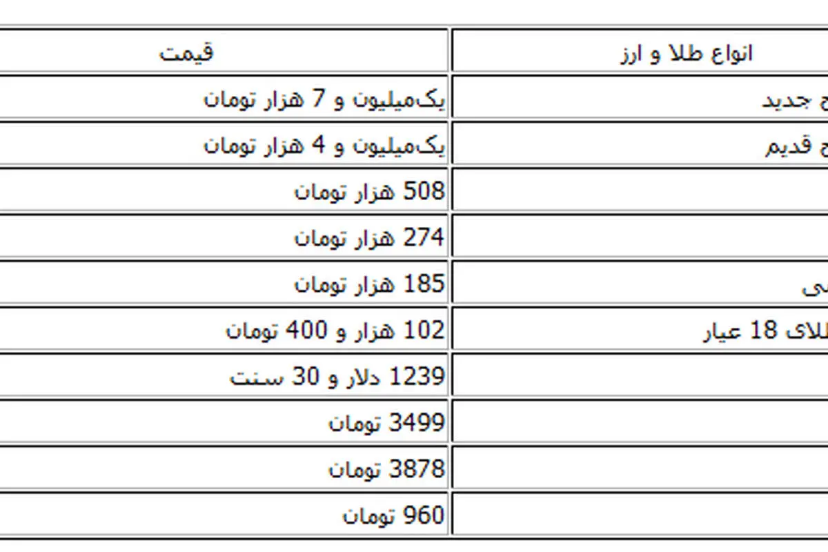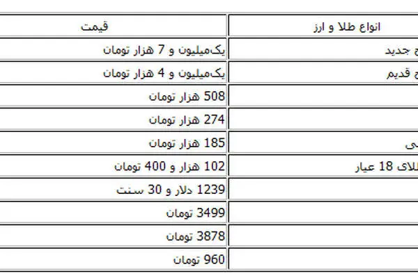 همچنین سکه طرح قدیم امروز با نرخ یک میلیون و 4 هزار تومان فروخته شد در حالی که دیروز یک میلیون و 2 هزار تومان قیمتگذاری شده بود.