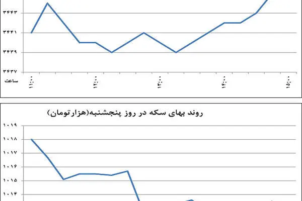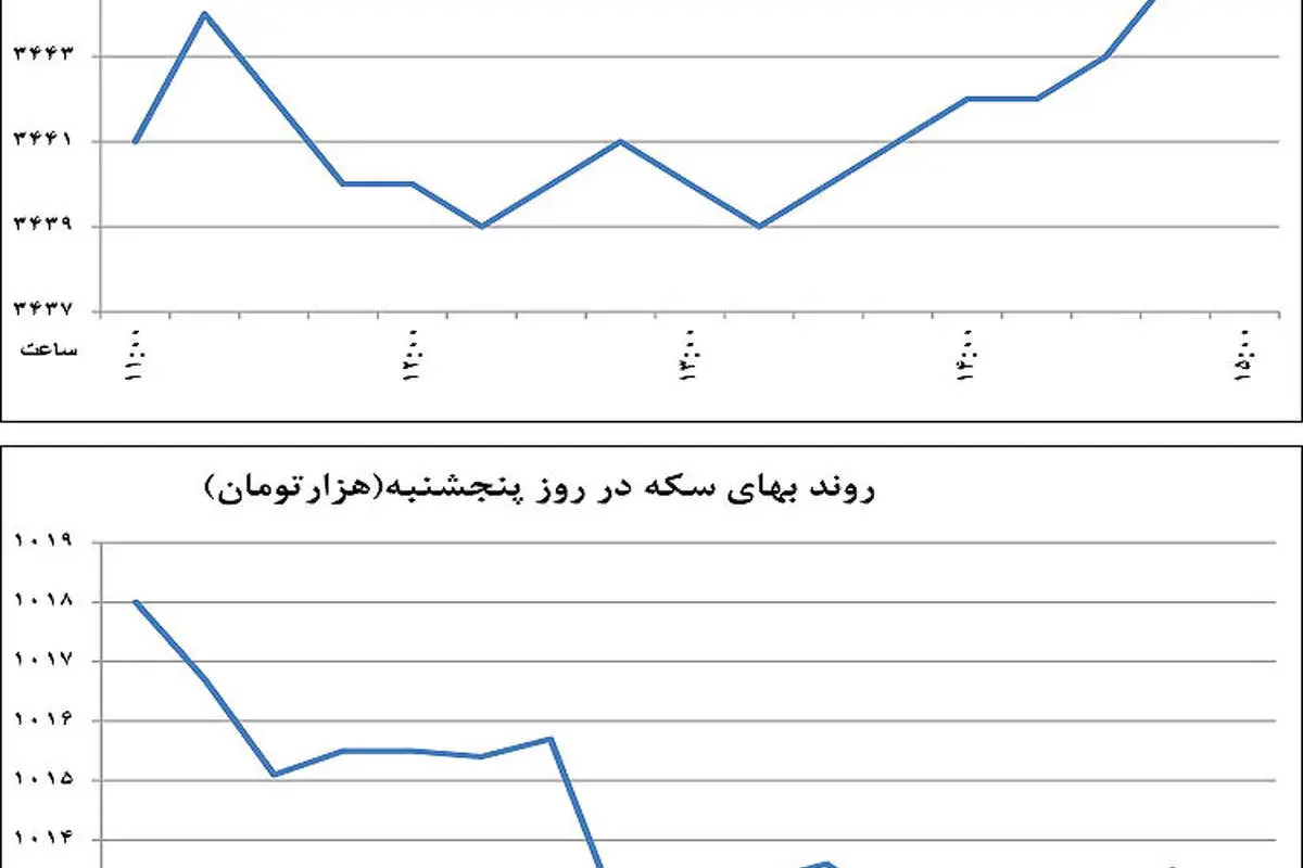 روز پنجشنبه، سکه تمام بهار آزادی معاملات خود را در کانال یک میلیون و 10 هزار تومان آغاز کرد؛ این در حالی بود که سکه روز چهارشنبه در کانال یک میلیون و 20 هزار تومان قرار داشت. در ششمین روز هفته، سکه معاملات خود را با قیمت یک میلیون و 18 هزار تومان آغاز کرد که کاهشی 6 هزار تومانی نسبت به روز چهارشنبه داشت. شروع کاهشی سکه ناشی از سقوط بهای اونس در بازارهای جهانی انتهای روز چهارشنبه و ادامه نزول آن در ساعات ابتدایی روز پنج شنبه بود. سکه روز پنجشنبه تحتتاثیر ورود اونس به محدوده هزار و 250 دلاری به افت خود ادامه داد و نهایتا ساعت 3 بعدازظهر با قیمت یک میلیون و 13 هزار تومان به کار خود خاتمه داد. این قیمت 11 هزار تومان کمتر از روز چهارشنبه بود و سکه را به کمترین قیمت در 50 روز گذشته رساند.