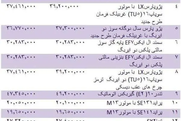 قیمت روز انواع خودروهای داخلی