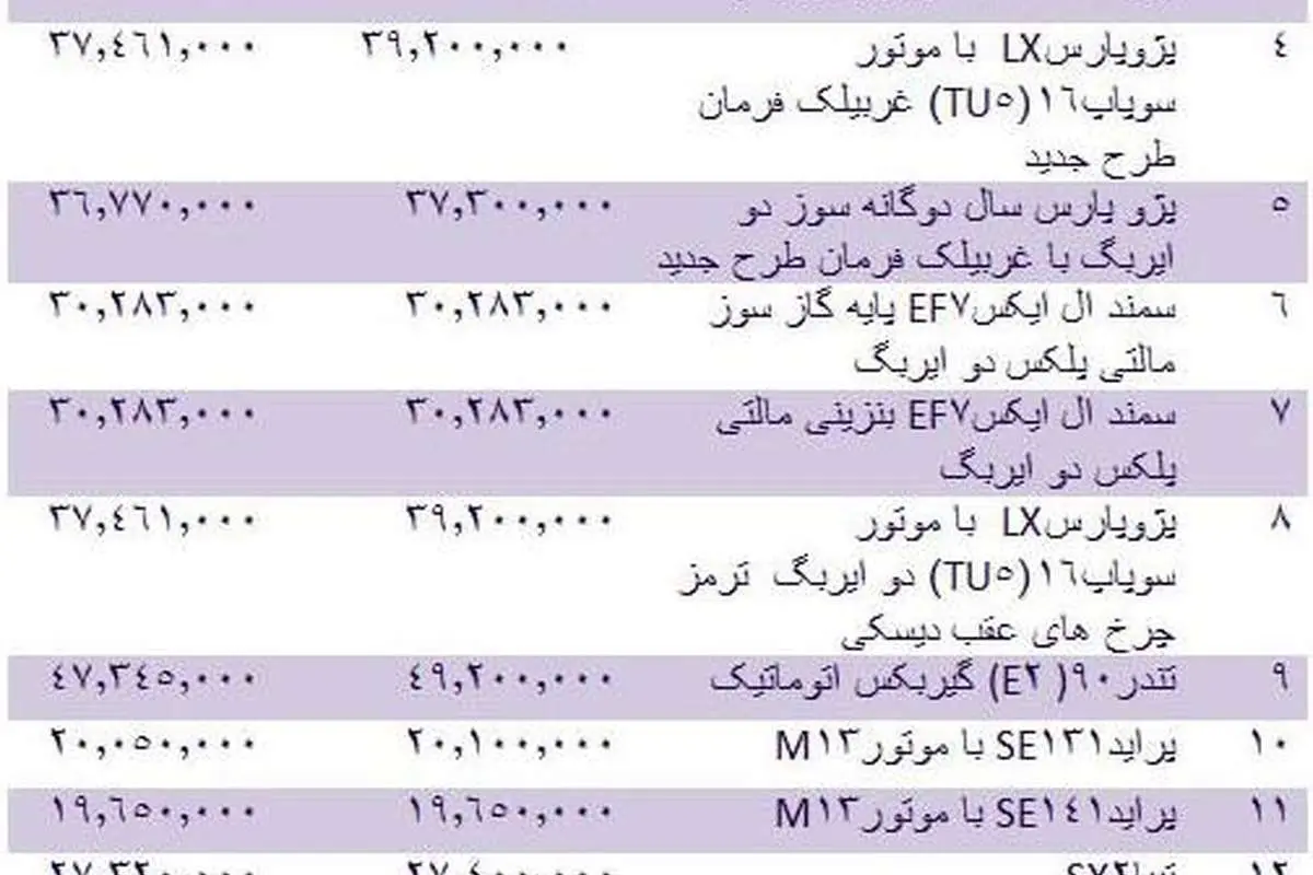 باشگاه خبرنگاران جوان نوشت: قیمت انواع خودروهای داخلی در بازار منتشر شد.