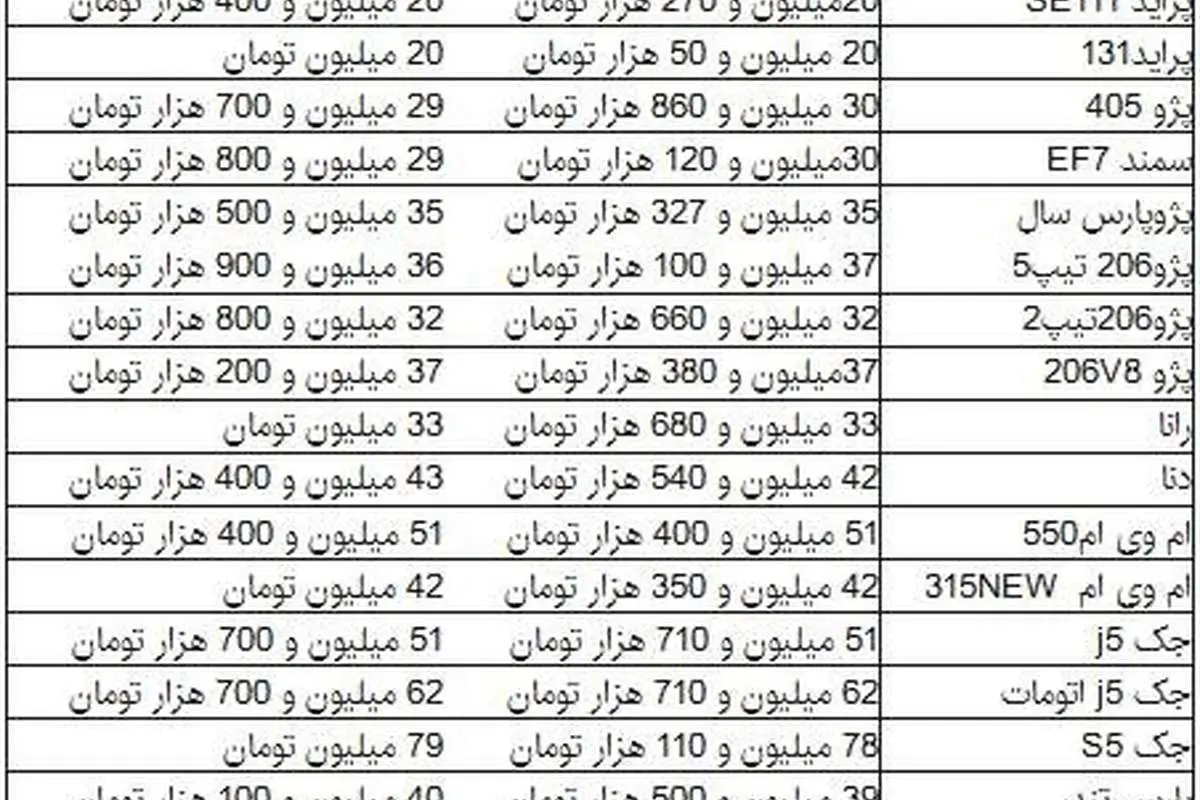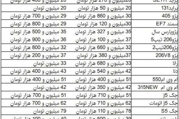 قیمت روز خودروهای داخلی به شرح زیر است: