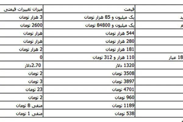 همچنین قیمت سکه تمام بهار آزادی یک میلیون و 85 هزار تومان با 3 هزار تومان افزایش و سکه امامی با ۲۶۰۰ تومان افزایش یک میلیون و 85 هزار و 100 تومان داد و ستد میشود.