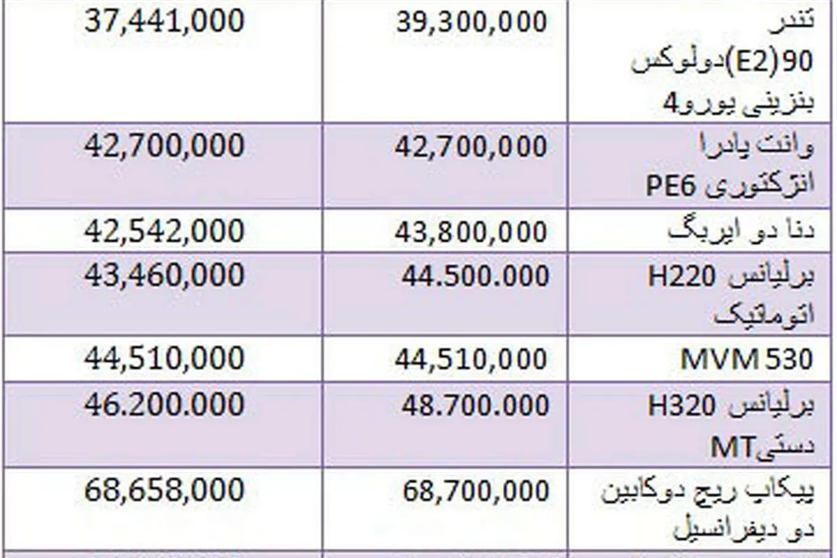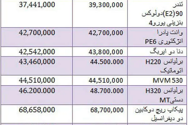 به گزارش باشگاه خبرنگاران جوان، قیمت انواع خودروهای داخلی به شرح جدول زیر است: