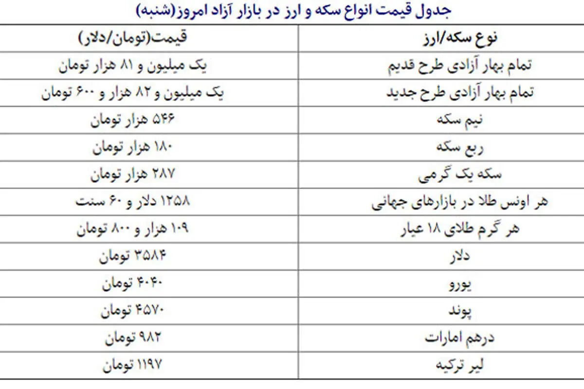 قیمت سکه تمام بهار آزادی طرح قدیم امروز با ۶ هزار تومان کاهش، به یک میلیون و ۸۱ هزار تومان رسید. نرخ انواع ارز هم کاهش را تجربه میکند.