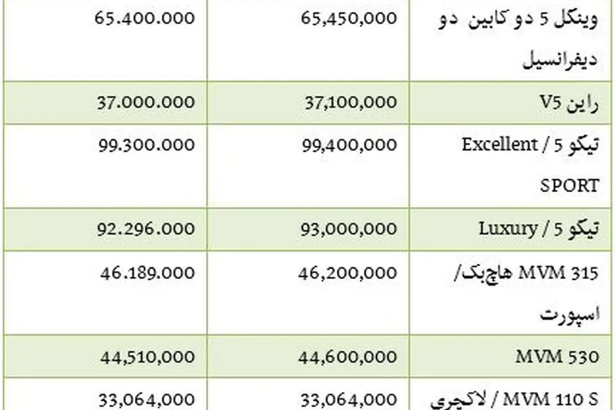 خودرو جک S5 اتوماتیک، 95 میلیون و رنو تندر E2 دو ایربگ 39 میلیون و 200 هزار تومان در بازار به فروش میرسد.