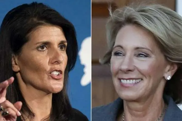 نیکی هیلی (چپ) و بتسی دیوس، هر دو نیاز به کسب رای اعتماد از کنگره آمریکا دارند.