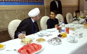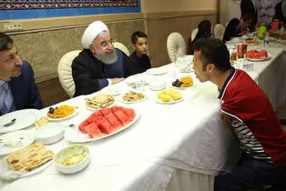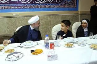به گزارش جماران، حسن روحانی در این مراسم پس از بیان سخنانی کوتاه، در سفره‌ای مشترک در جمع صمیمی مددجویان روزه‌ی خود را افطار کرد.