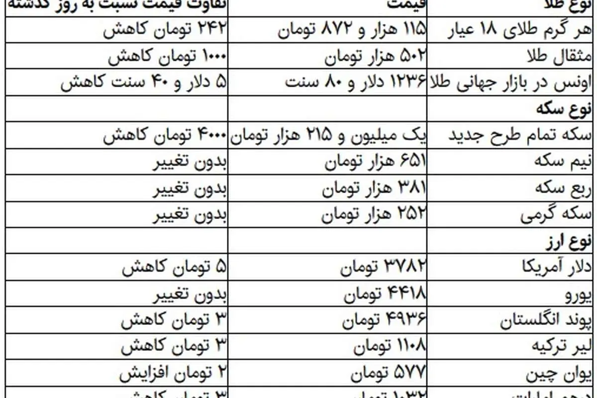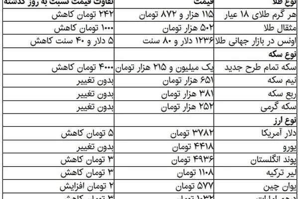 لازم به ذکر است قیمتها در بازار آزاد در طول روز نوسانی بوده و ثابت نیستند و جدول زیر بر اساس آخرین قیمتها تکمیل شده است.