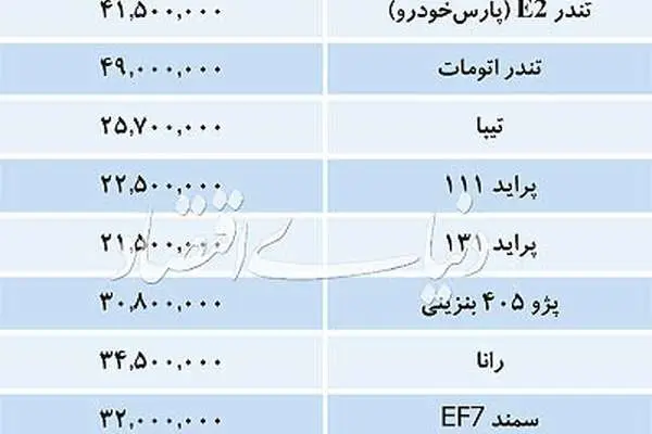 دنیای اقتصاد جدول زیر را منتشر کرد.