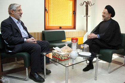 هفته گذشته، هفته ديدارهاي رهبران اصلاحات با يکديگر و چهره هاي شاخص اين جناح سياسي بود، چه اينکه پس از ملاقات ميرحسين و کروبي و حضور کارگزاران دولت اصلاحات براي گراميداشت شصت و ششمين سال خاتمي، اين بار اين سيدمحمد خاتمي بود که به ديدار دوست و همفکر ديرين خود يعني مهندس موسوي شتافت تا پازل رايزني هاي اصلاح طلبان تکميل شود.