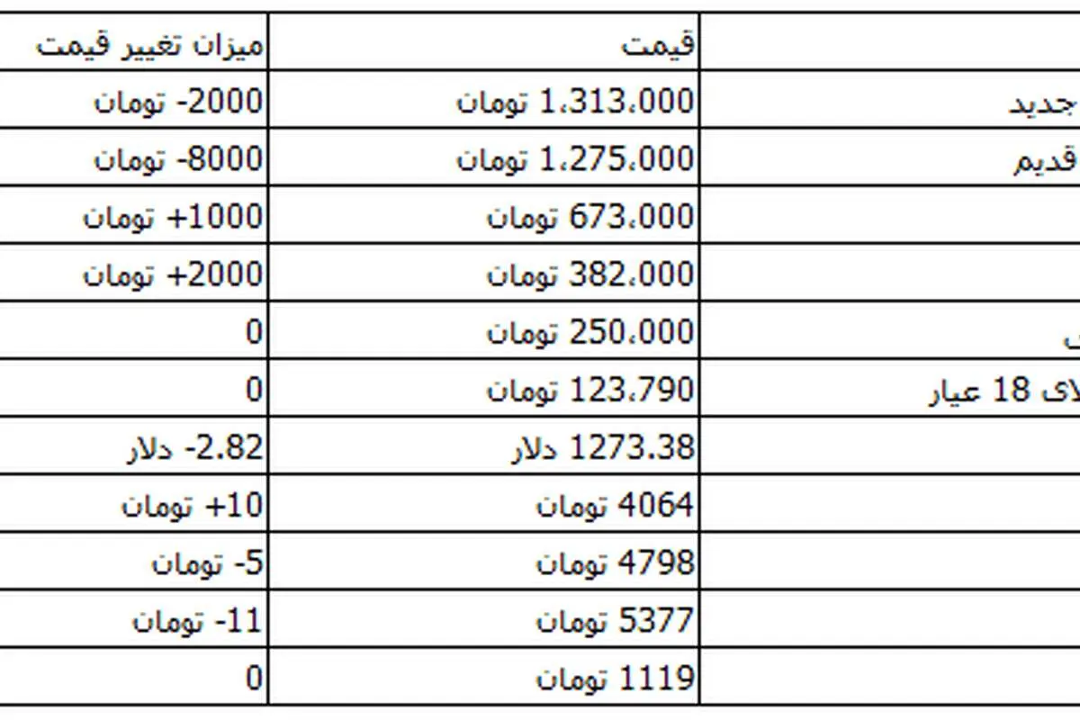 نیم سکه هزار تومان و ربع سکه 2 هزار تومان رشد کرد اما بهای سکه گرمی و هر گرم طلای 18 عیار بدون تغییر درج شد.