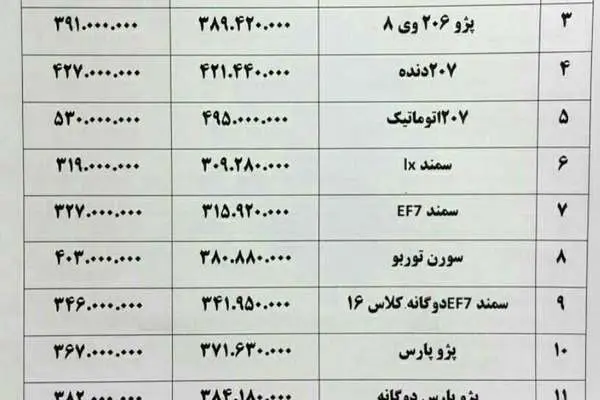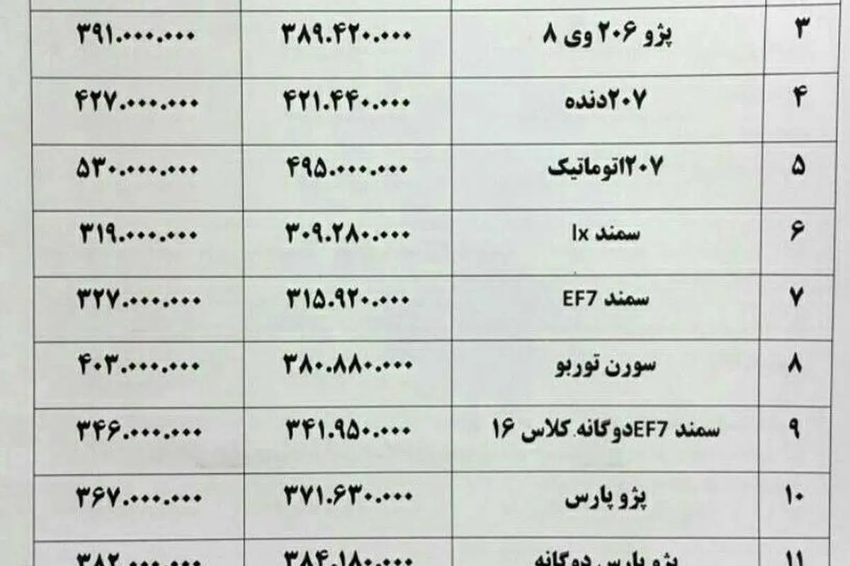 همچنین قیمت سمند EF7 نیز در بازار ۵۰۰ هزار تومان افزایش داشته و به ۳۲ میلیون و ۷۰۰ هزار تومان رسیده است. در مورد رنوکپچر نیز باید به افزایش ۳ میلیون تومانی قیمت این خودرو در بازار اشاره کرد که هماکنون با قیمت ۱۲۸ میلیون تومان خریدوفروش میشود.