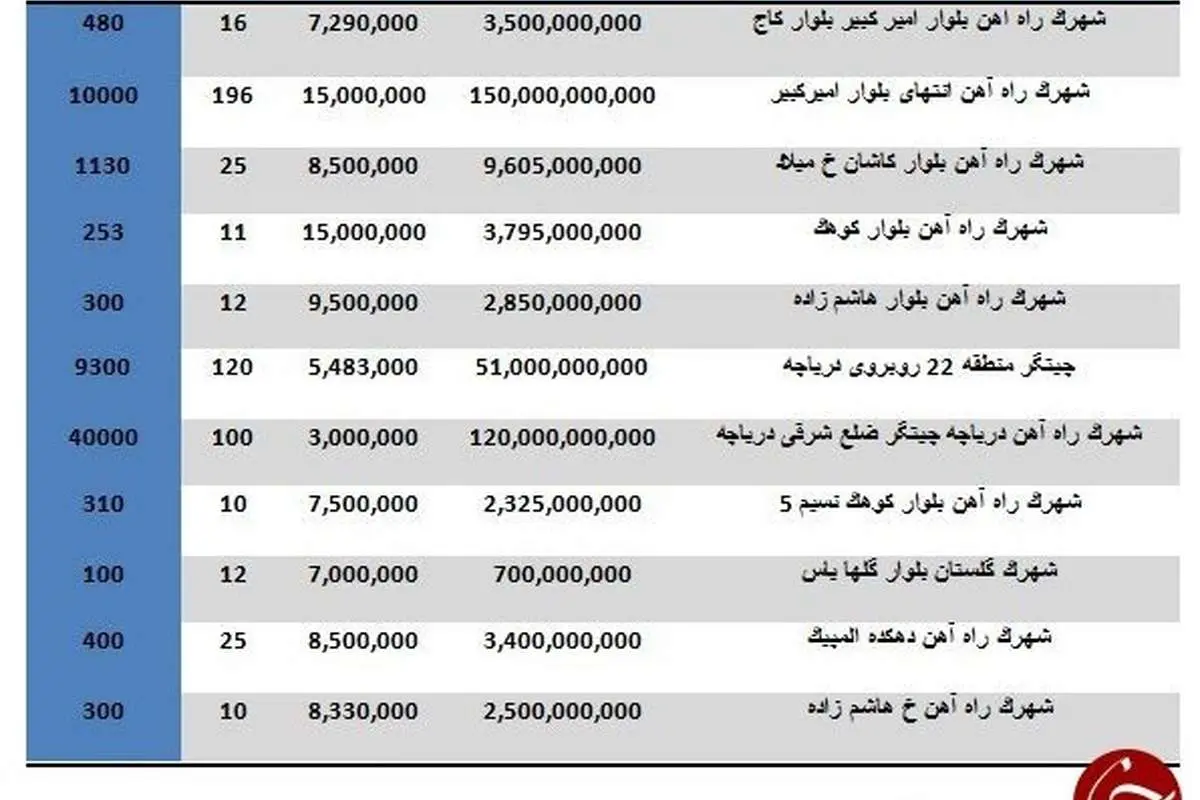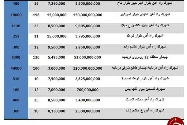 در جدولی نرخ خرید و فروش زمین در منطقه ۲۲ شهر تهران به این ترتیب است.