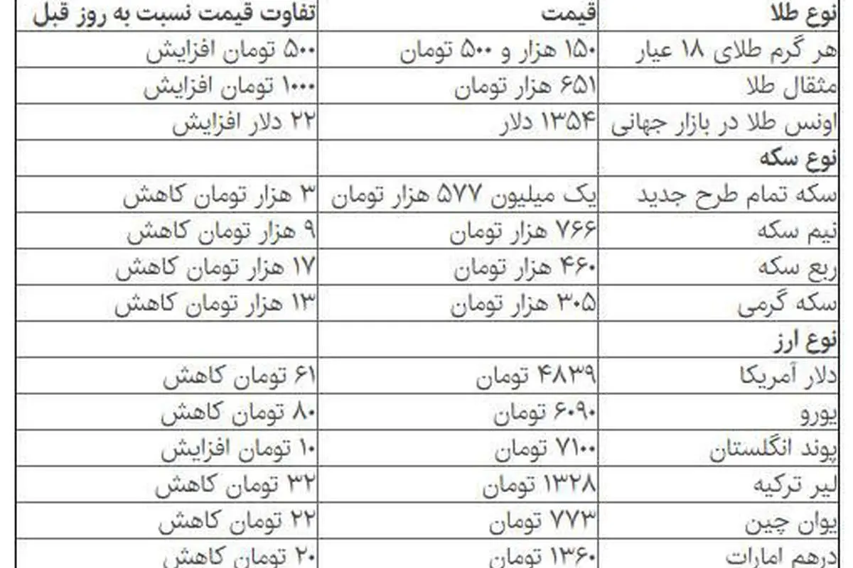 در بین سایر ارزها نیز به جز پوند انگلستان که با افزایش قیمت همراه بوده است سایر ارزها با کاهش قیمت روبرو شدهاند.