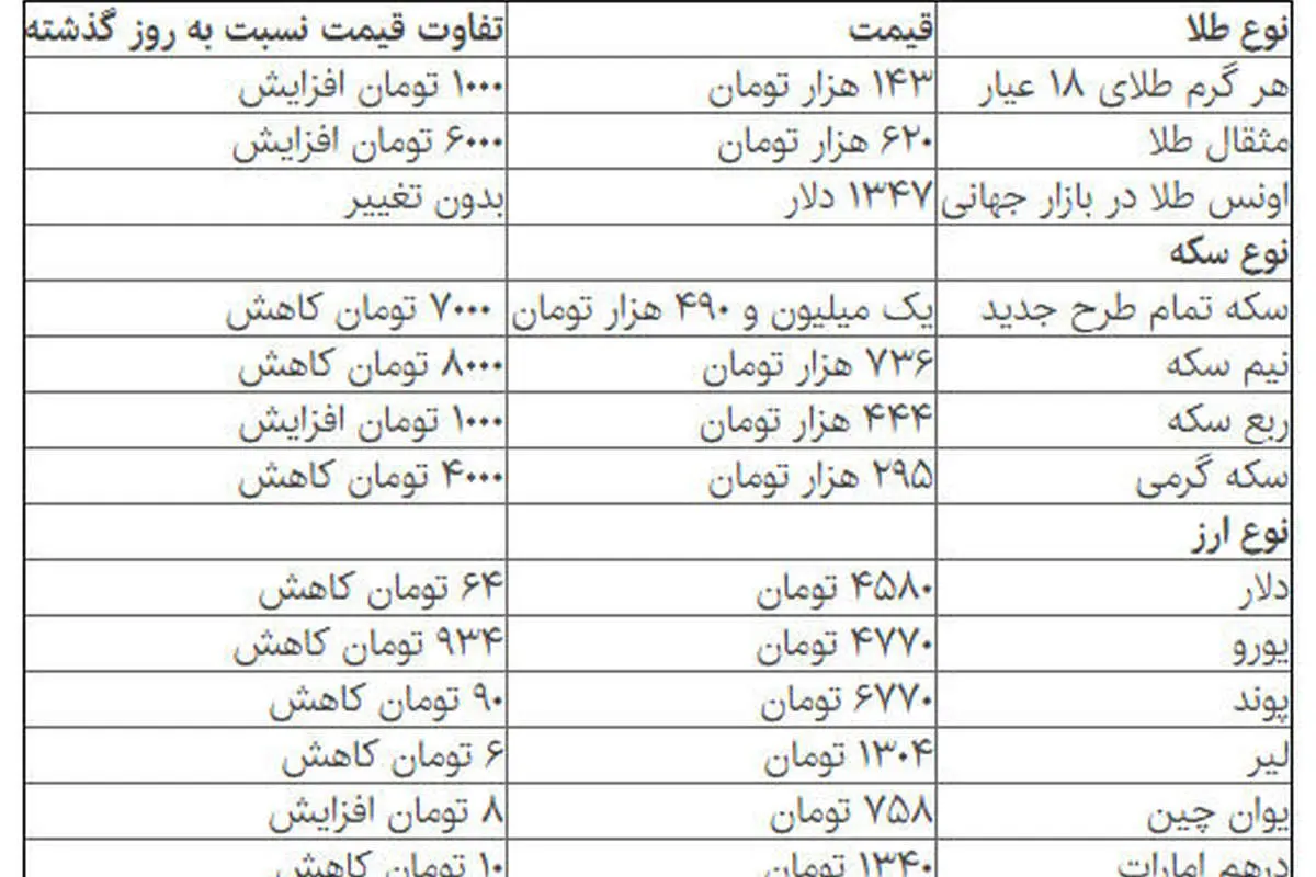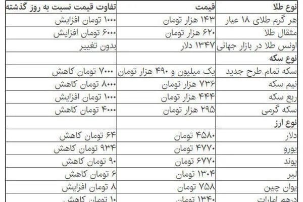 سایر ارزها هم عمدتا با کاهش قیمت روبرو شدهاند. در این میان یورو بیشترین و لیر کمترین کاهش را دارد.