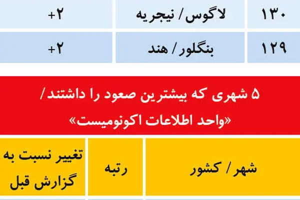 «واحد اطلاعات اکونومیست (EIU)» نهاد زیرمجموعه نشریه انگلیسی «اکونومیست» در جدیدترین گزارش خود «گران‌ترین و ارزان‌ترین» شهرهای جهان را معرفی کرد. در رتبه‌بندی این نهاد که هر ۶ ماه یکبار با عنوان «هزینه جهانی زندگی» منتشر می‌شود، قیمت ۱۶۰ قلم کالا در ۱۳۳ شهر از ۹۰ کشور جهان بر اساس دلار آمریکا مورد ارزیابی قرار گرفته است.